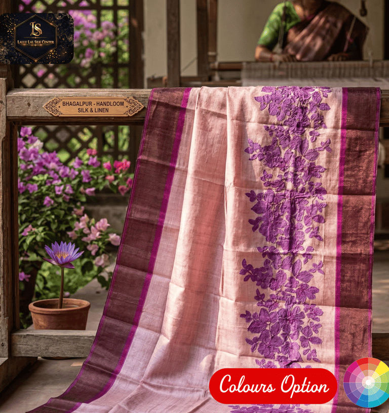 Experience the raw, organic beauty of traditional Indian weaves with our latest collection at Lallu Lal Silk Center. This Tusser Ghicha Silk Saree is a celebration of texture, craftsmanship, and sophisticated design.