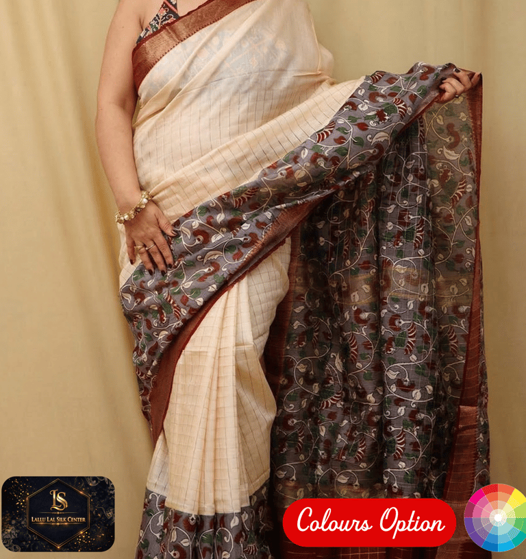 Elevate your ethnic wardrobe with the perfect blend of traditional craftsmanship and modern flair. This exquisite Zari Tusser Printed Silk Saree from Lallu Lal Silk Center is designed for the woman who values elegance without compromising on comfort.
